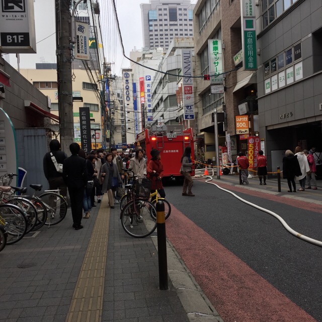 さぁ、お昼ご飯を食べて本番に!と思って、表に出たら、消防車!