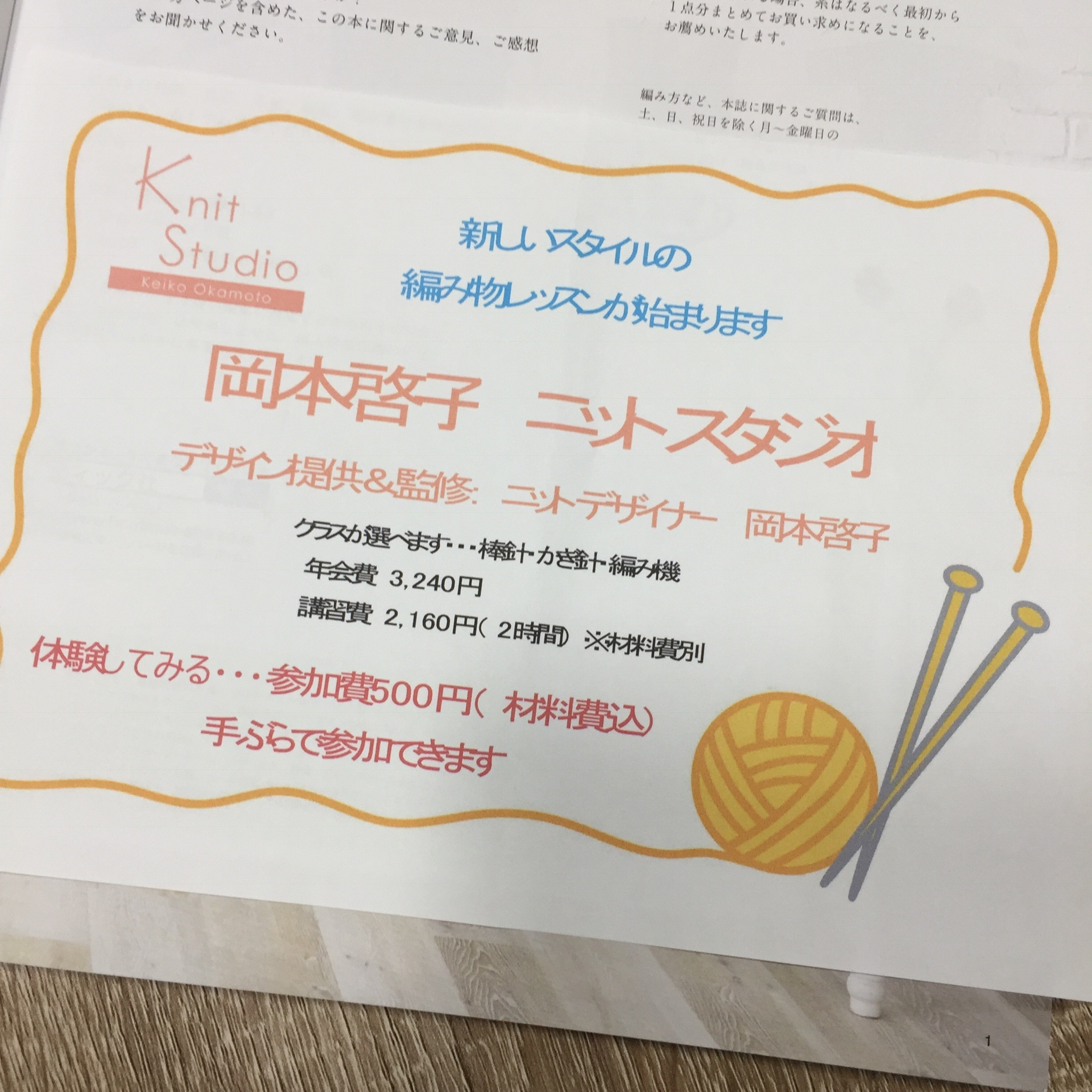 で、そごう広島店さんでは、明光先生が店頭におられる時は、下記のチラシのように、年会費3240円を支払って入会し、一回2時間2160円。10時から15時30分までおられます。初級からスタートなのですが、かぎ針、棒針のコースが選べるようです。数点ある作品の中から、2〜4作品を自分で編みたいものを選んで編むことになります。詳しいことは是非お問い合わせ下さい。