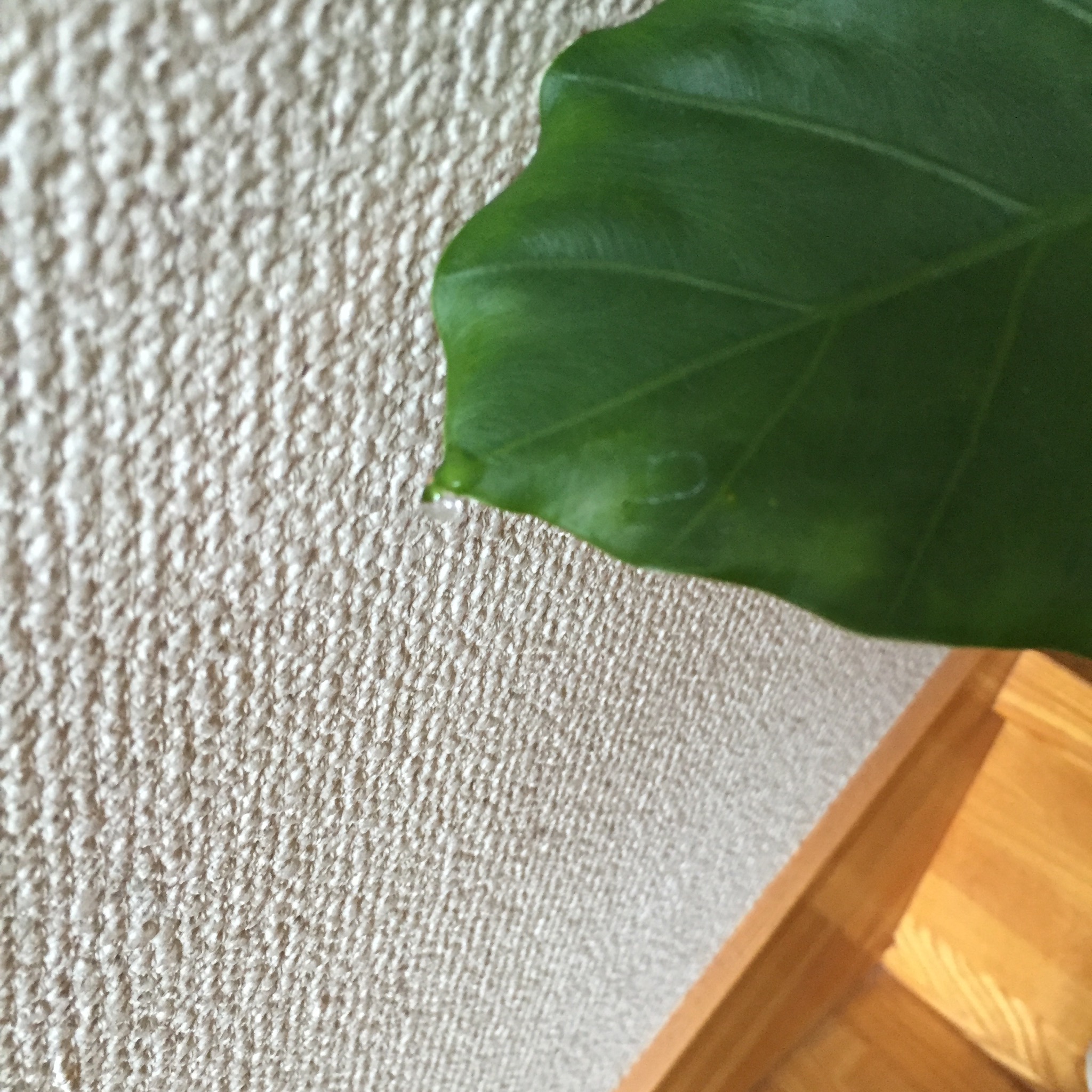 出勤しようとしたら、クワズイモが光っていて…ん?と思って見てみたら、クワズイモが泣いていた…。