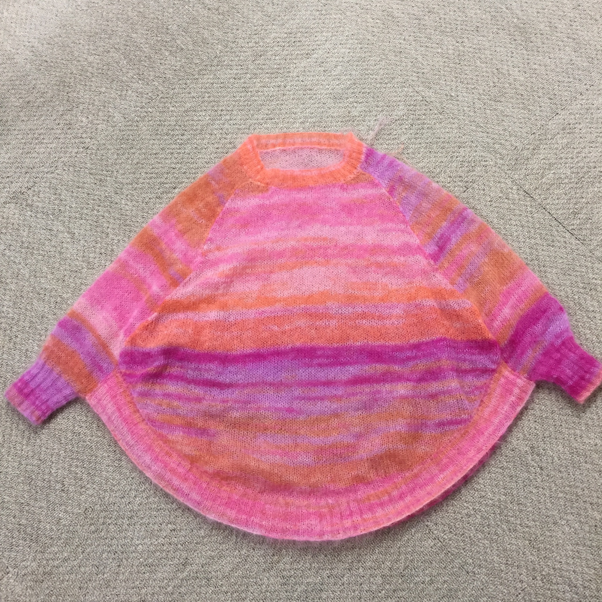こんな感じになります。まだアイロンかけてません(笑)なので、だるだるな感じですけど。先生にも襟ぐりが綺麗です!と褒めて頂きました。やったぁ!嬉しい。また新作に取り組みます。編み物をちゃんとした趣味にしたいのです。なので、ちゃんと習って頑張るのです。