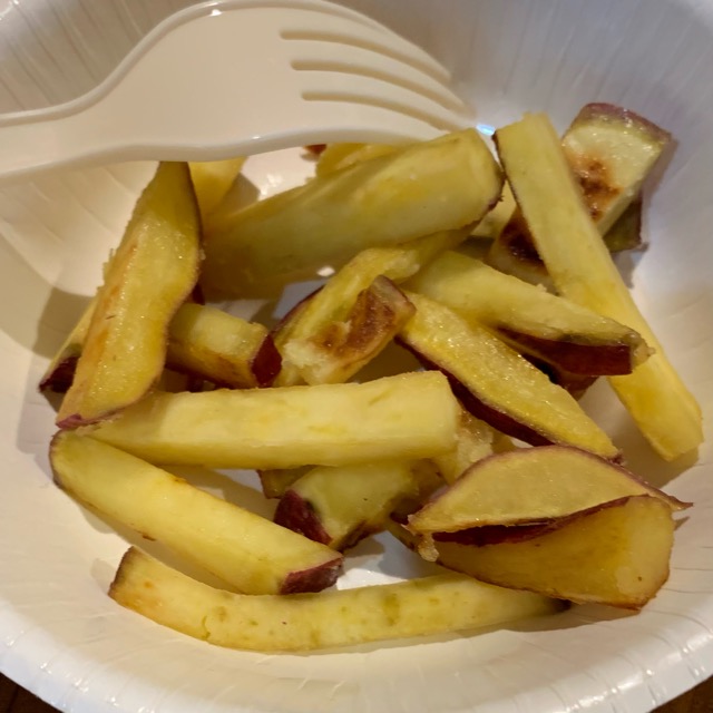 着いたらすぐ、さつまいもがたくさん入ったカップケーキ。