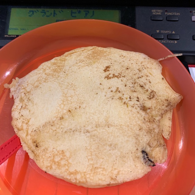 ホットケーキでした。この後、子供達のおススメにより、チョコレートシロップを「え?」というくらいかけたので、その前に撮影(笑)へっへっへ。