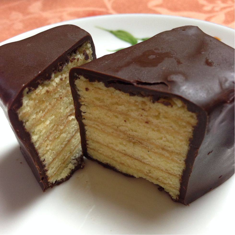 これは、無花果さんの商品で、廣島バウムクーヘンがカットしてあって、チョコレートがコーティングしてあるんです。