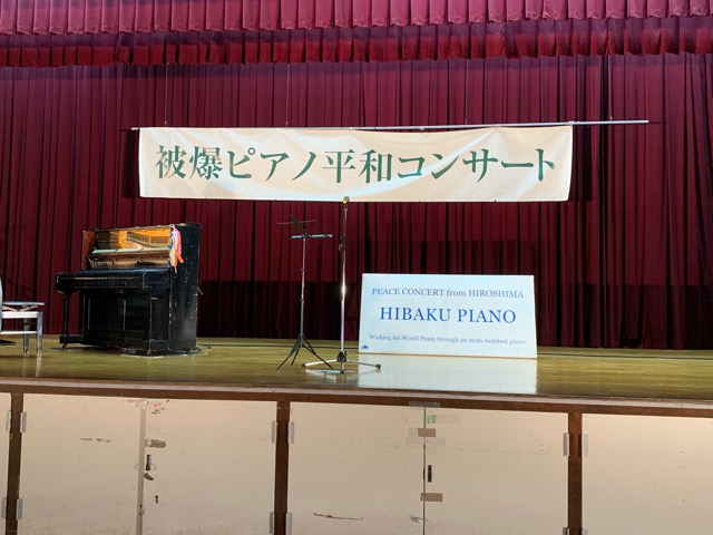 明石市の中学校で被爆ピアノコンサートがありました。