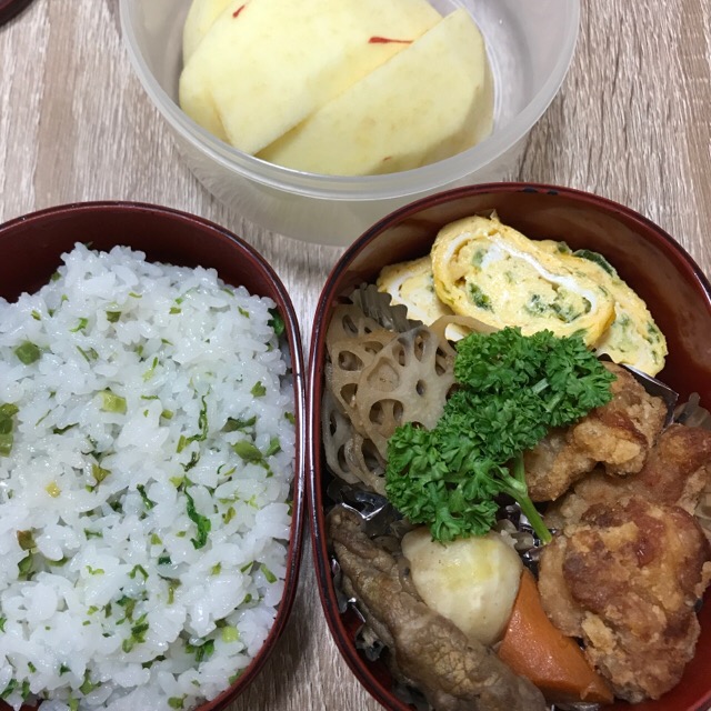お弁当を急いで食べて