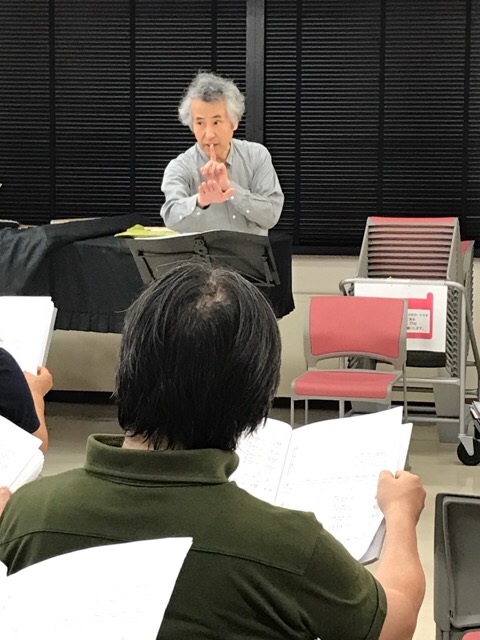 由美子先生が到着されるまで、様々な曲の通しを。男声が少なかったので、作曲者自らが合唱に入って下さいました。