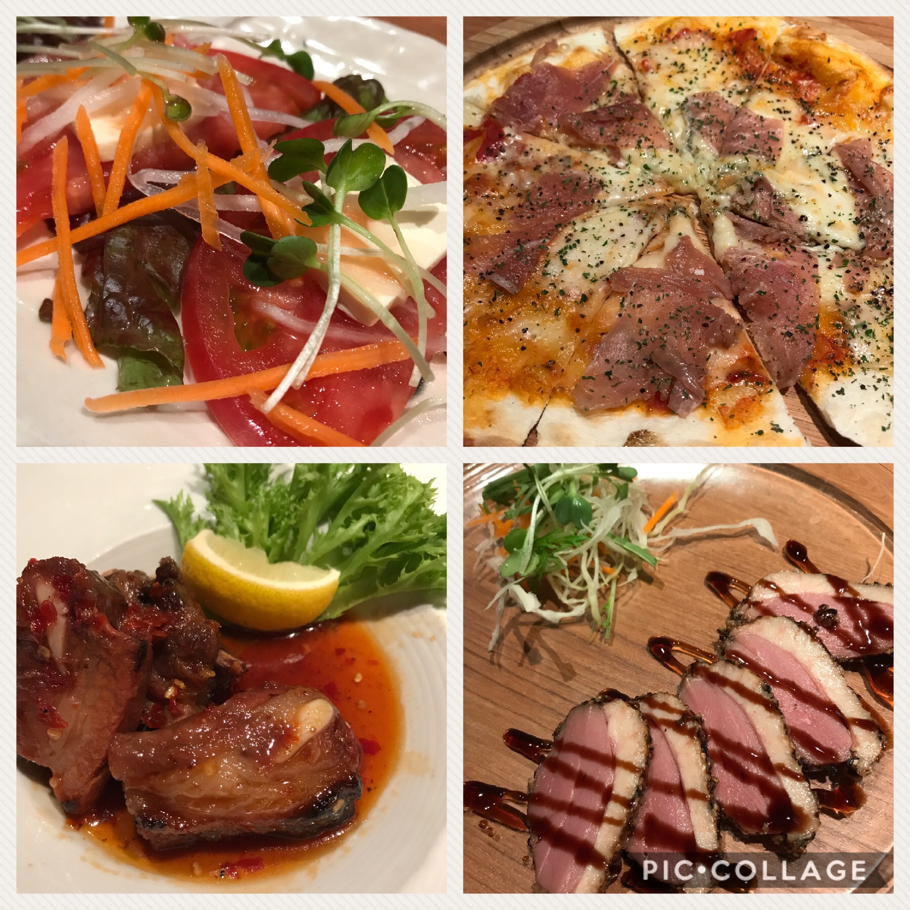 トマトとクリームチーズのカプレーゼ、マルゲリータ、スペアリブ、合鴨♡