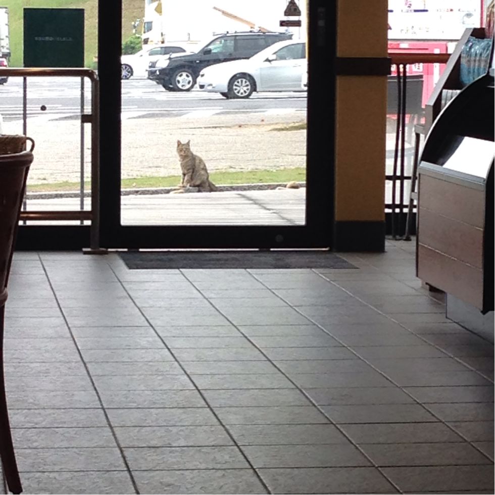 窓の外には猫。