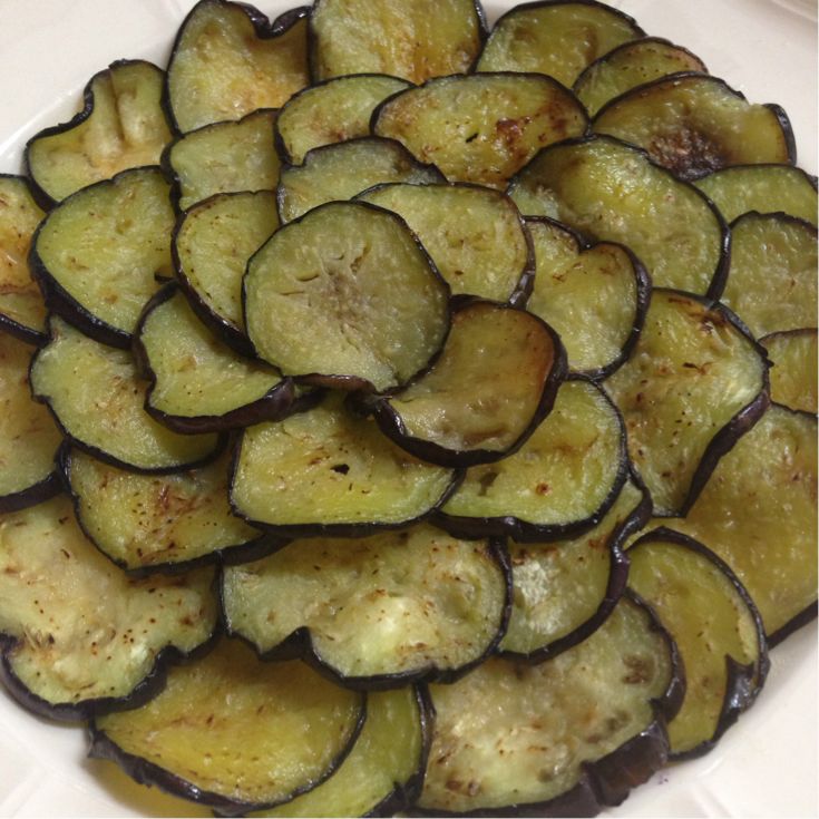 茄子をスライスして、水にさらして、キッチンペーパーで水分を取って、オリーブオイルで焦げ目が軽くつくまで焼きます。そして並べる!