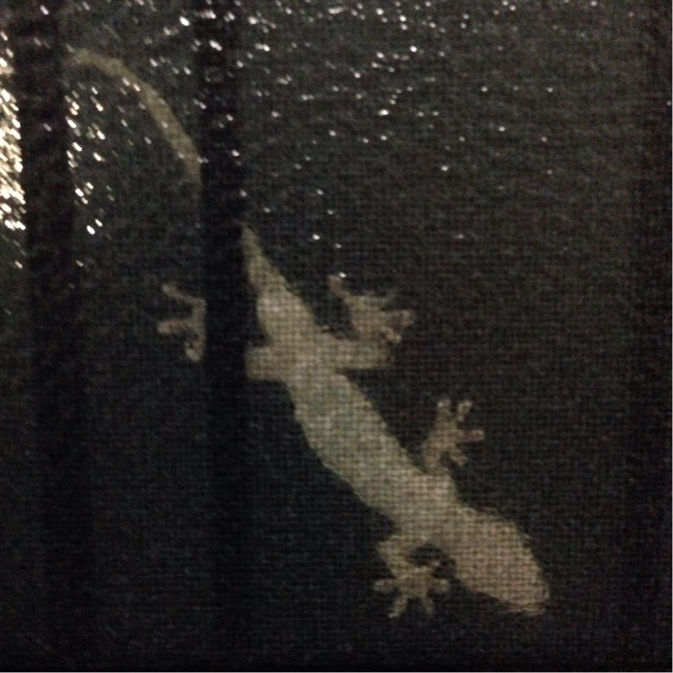 あ、戸締りをした時の我が家の玄関に張り付くヤモリくん。