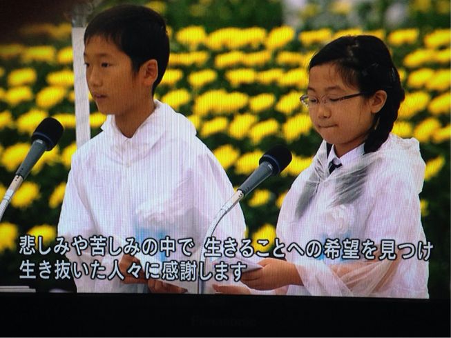 平和記念式典ではまだ雨でした。8時15分に黙祷をし、子供達の平和の誓いを聞いて涙し忙しい朝でした。