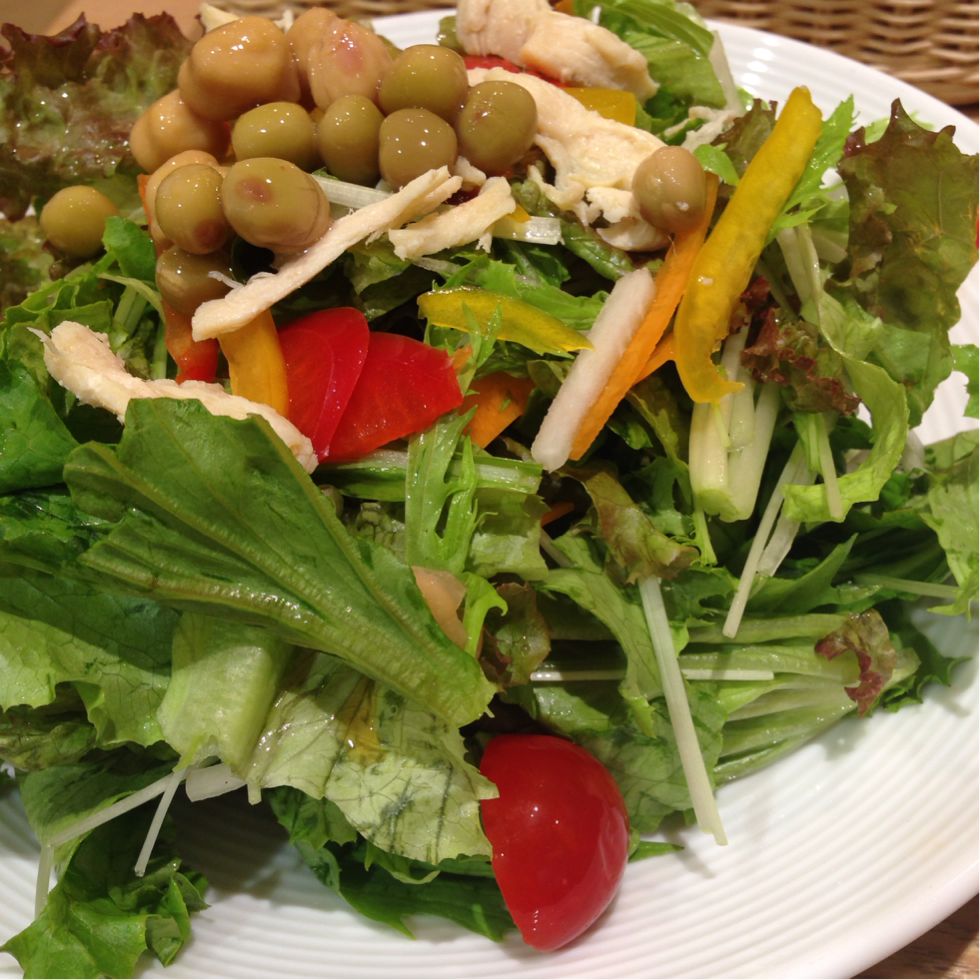 とりあえず、ご飯…。旅行になると、俄然お野菜が不足するので、野菜サラダが食べたくなり、どーん。