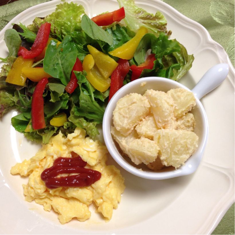 何食か、飛び飛びで、ご飯を抜いて胃を休めた甲斐があって、軽めのものなら食べられるようになりました。でも、スクランブルエッグが、私には重たかった(>_<)一気にブルー(笑)