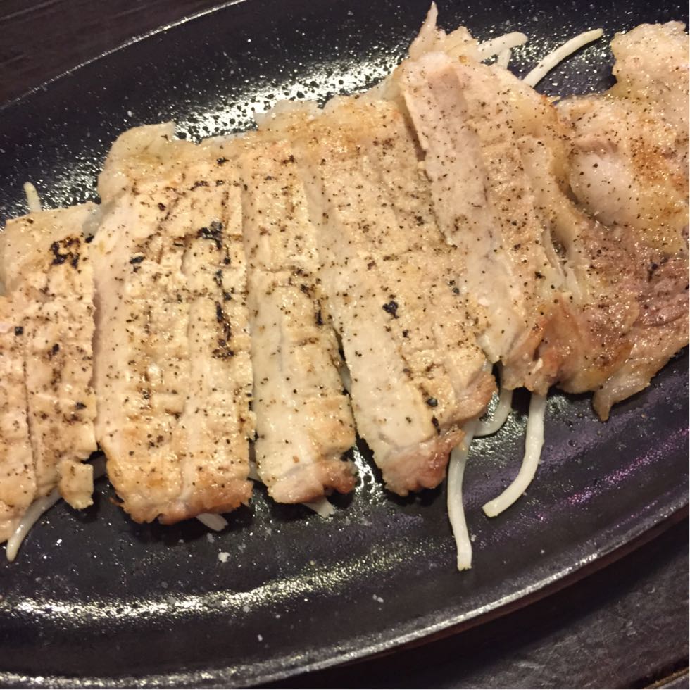 アグー豚の鉄板焼き。うん!美味しい!柚子胡椒で食べると更に美味しい。