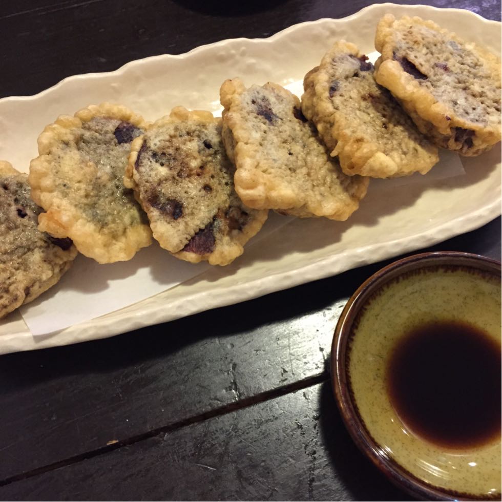 紅芋の天ぷら。これは美味しかったです!ウスターソースを勧められたけれども、そのままで。
