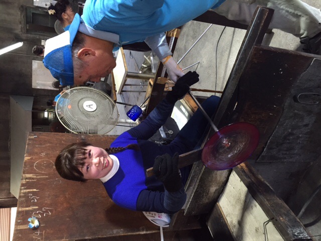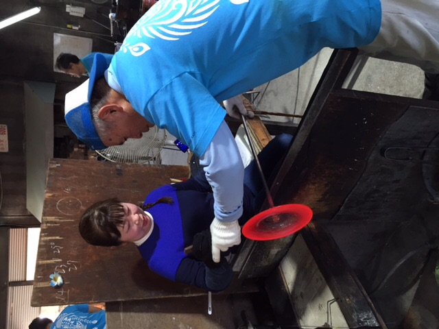 琉球ガラス村でお皿作り