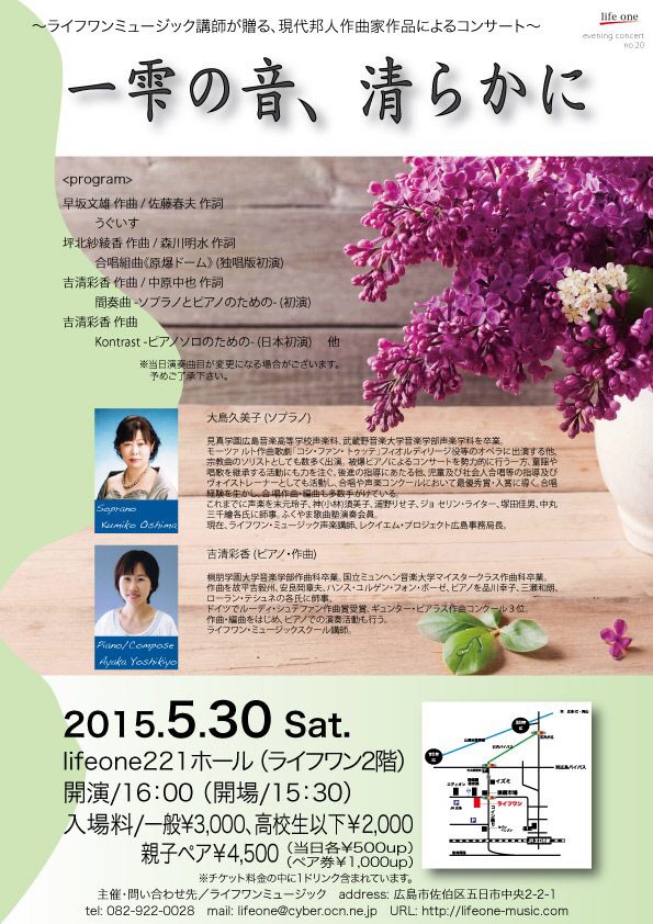 緊張します。でも、どうしても、吉清先生と、坪北さんの、女性作曲家の作品を多くの方に聴いて頂きたいのです。素晴らしいですもん。しかも、二人とも広島出身。いい形でご紹介したい。