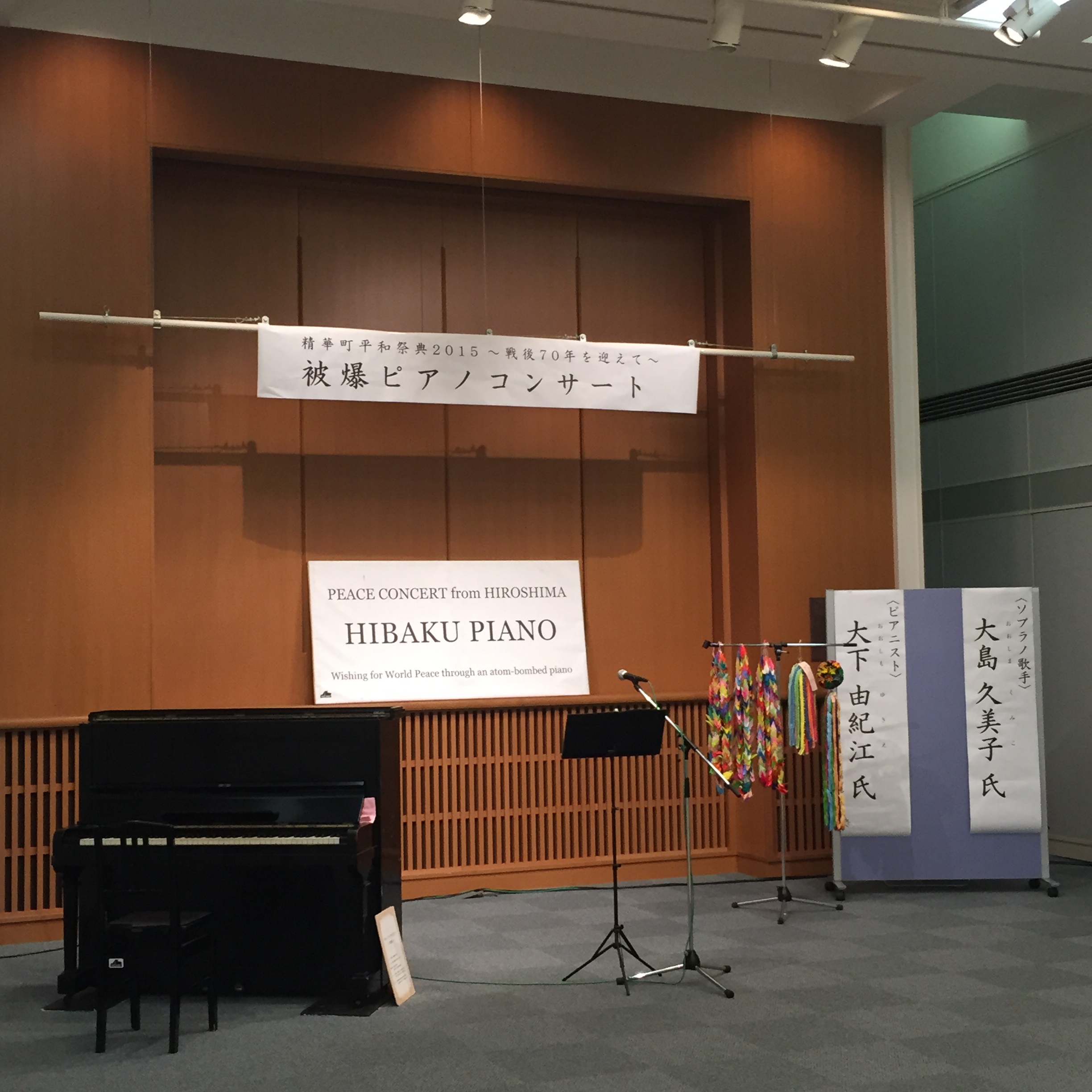 「氏」って(笑)!きゃー頑張らねば!担当して下さった方が、被爆ピアノコンサート開催のために奔走して下さり実現したコンサートです。気合いを入れて挑みました。矢川さんは他県コンサートのためご不在でしたので、ピアノの説明から入りました。立ち見が出るほどの満席でした。