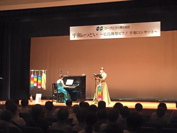 この日も相当暑かったのですが、大勢のお客様に足を運んで頂きました。コープ神戸の方は、平和活動への取り組みが本当に素晴らしくて、それをこつこつと続けておられるんです。その取り組みには、頭が下がります。市民目線で、自然体で取り組んでおられる。年代問わず、その取り組みは素晴らしくて、感動します。その一環として、被爆ピアノを呼び続けて下さっているのです。