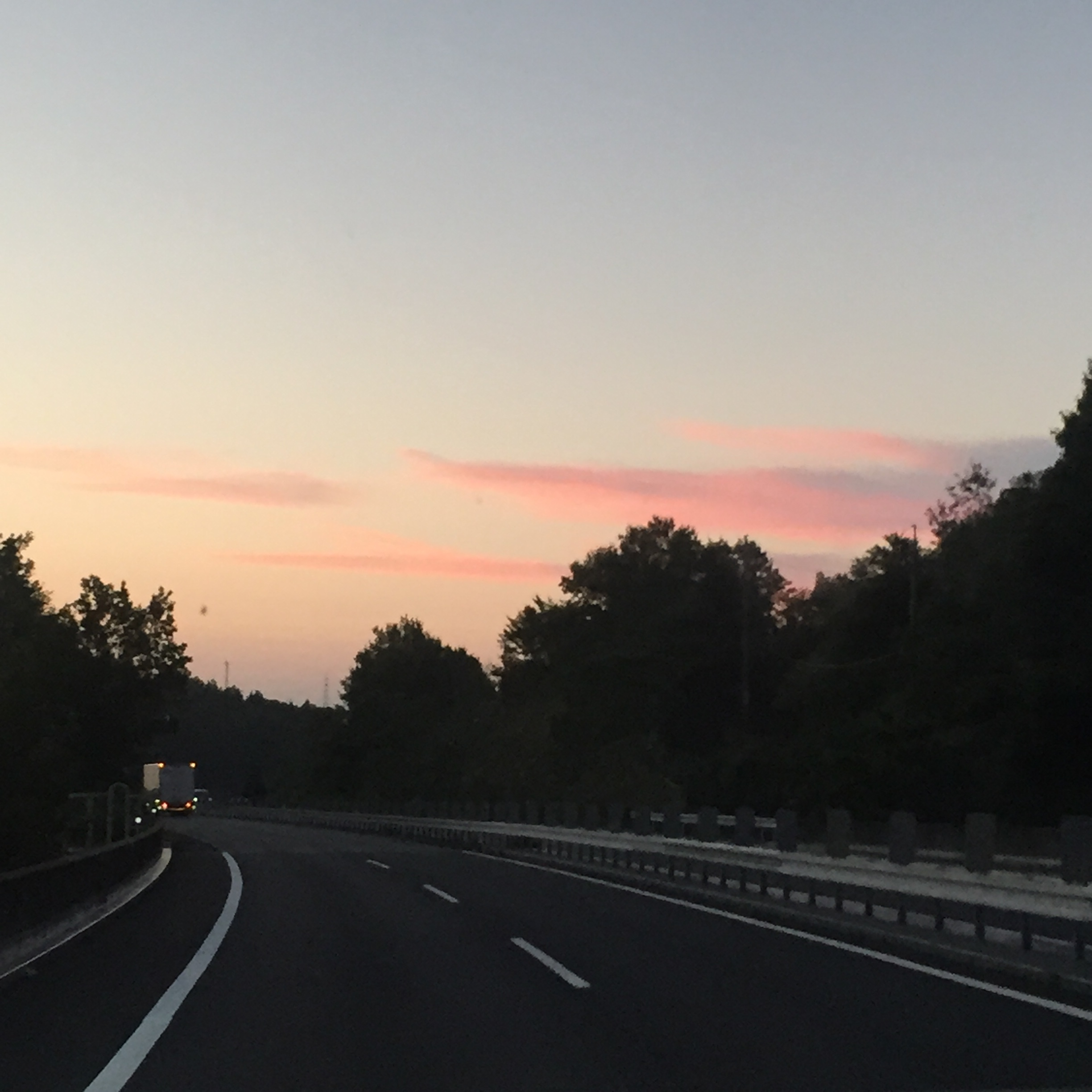 朝4時に出発して、9時到着。途中美しい朝焼けも見ました。