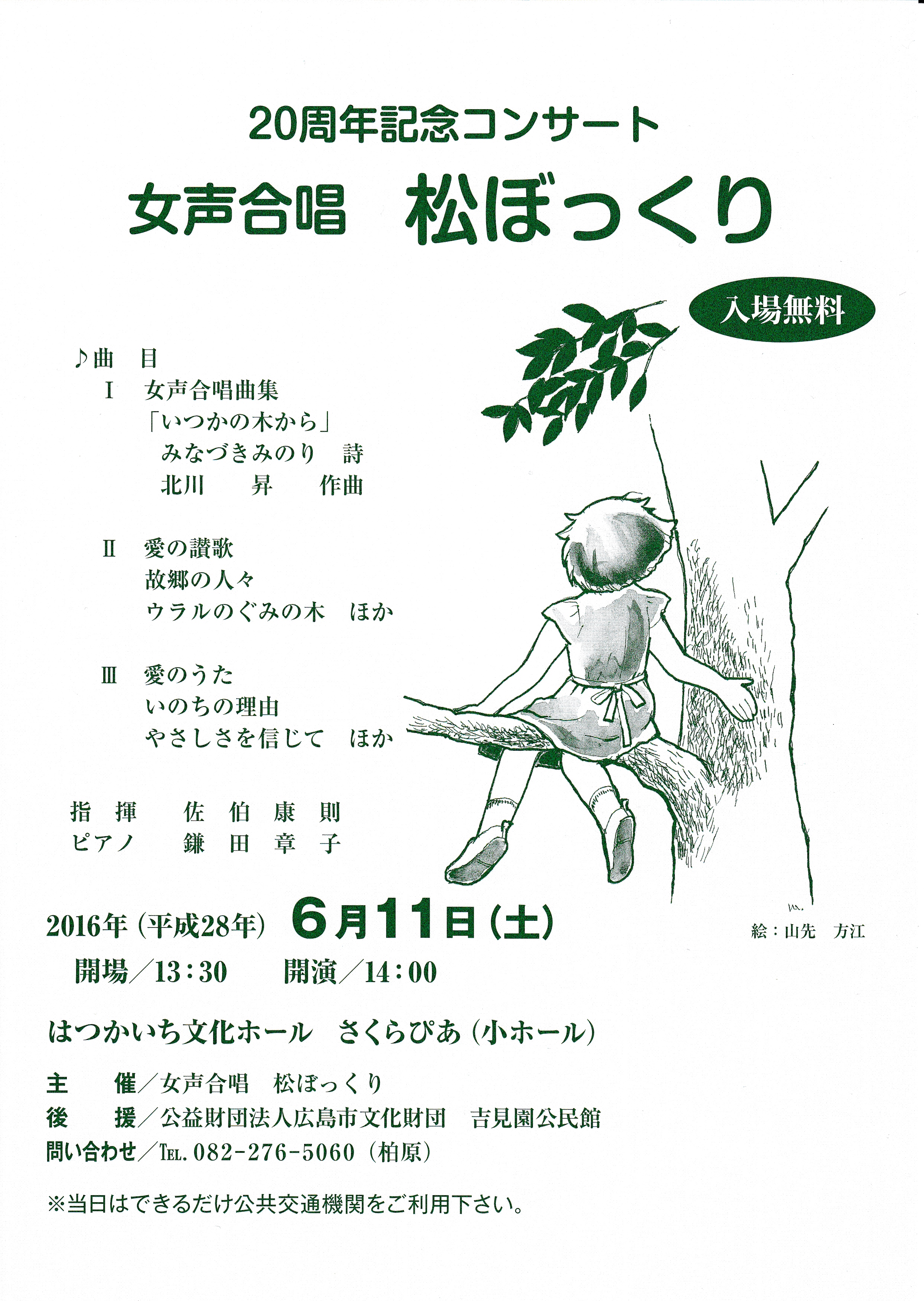 もうひとつは、廿日市混声合唱団。こちらは女声パートのみヴォイストレーニングで伺っております。こちらは、廿日市市合唱祭への出演です。大変厚みのある声です。是非、応援して頂きたく思います。