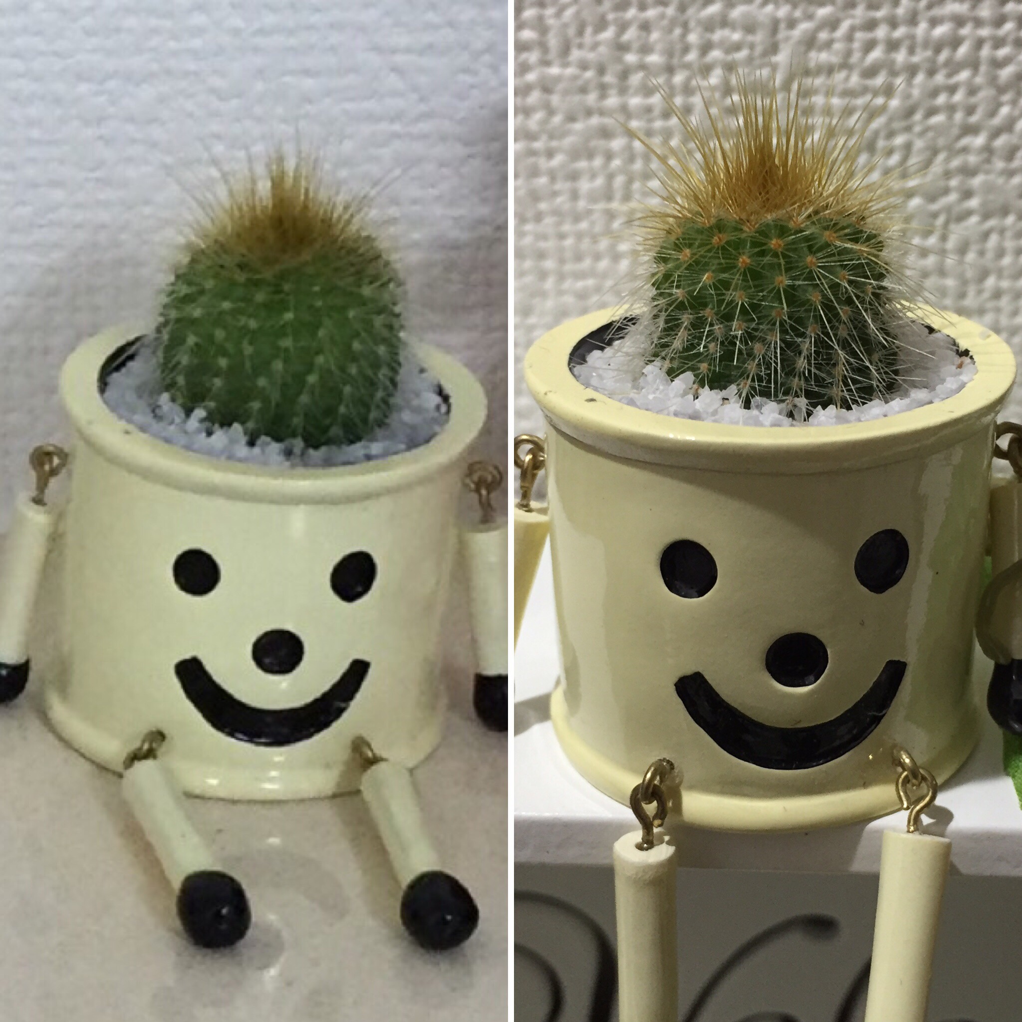 このサボテンと同じ時期に購入したサボテンがもう一つあります。左が3月。右が今日。