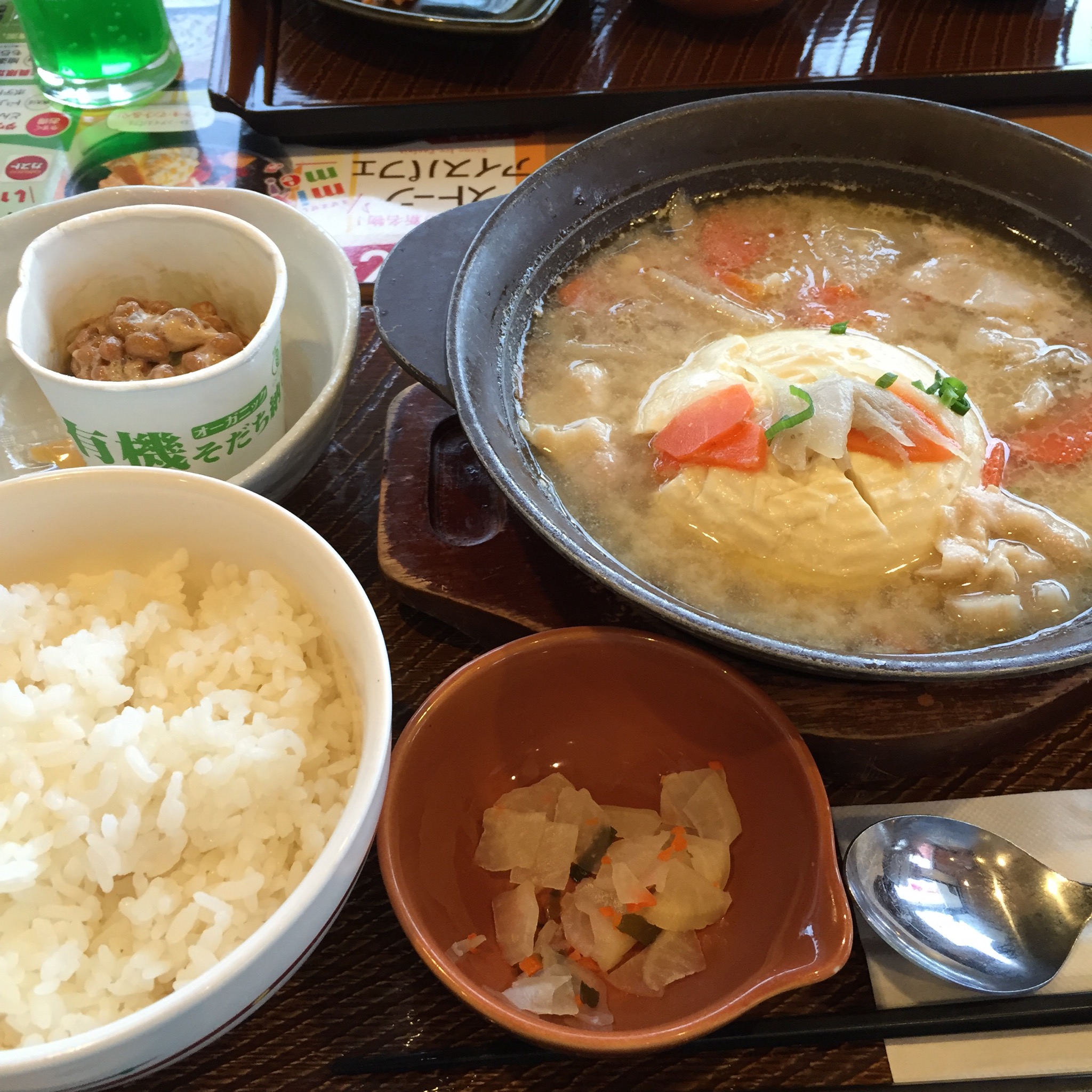 お腹が空いたね、ということで、現場から少し離れてた場所にガストがあり、迷わず入りました。私達は豚汁定食。私は納豆を別注。むふ。