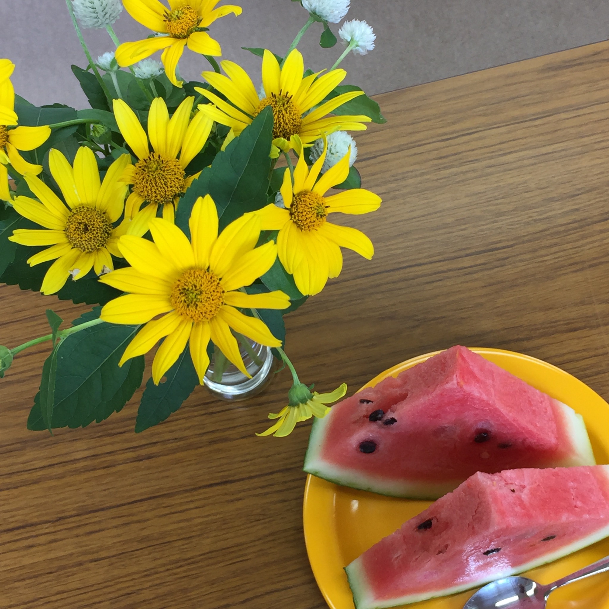 あまりの嬉しさに、お花とスイカのコラボ(笑)