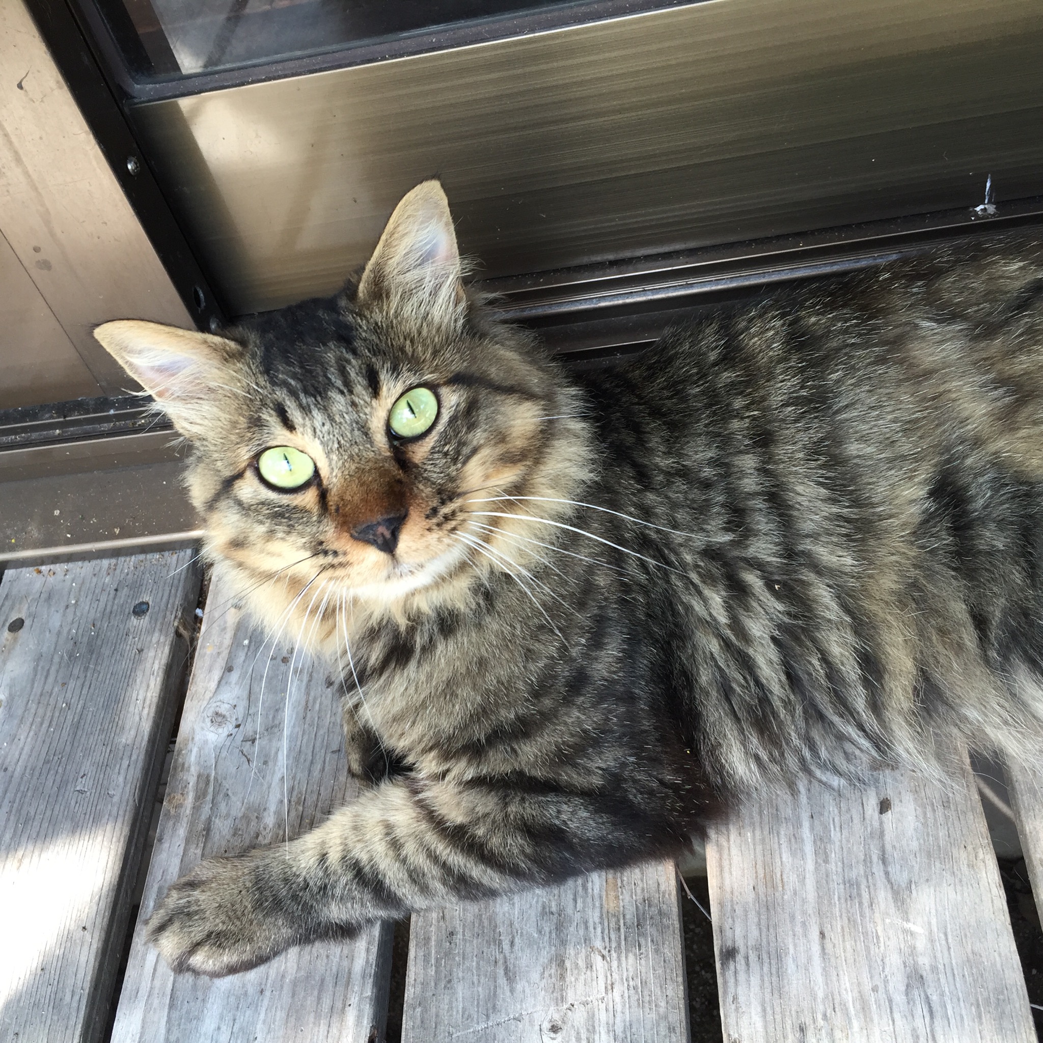まとわりついてきて、とってもかわいかったです。しばらくなでさせてくれました。人懐こいのですが、野良猫なんだそうです。カメラ目線。ふふ。かわいい。