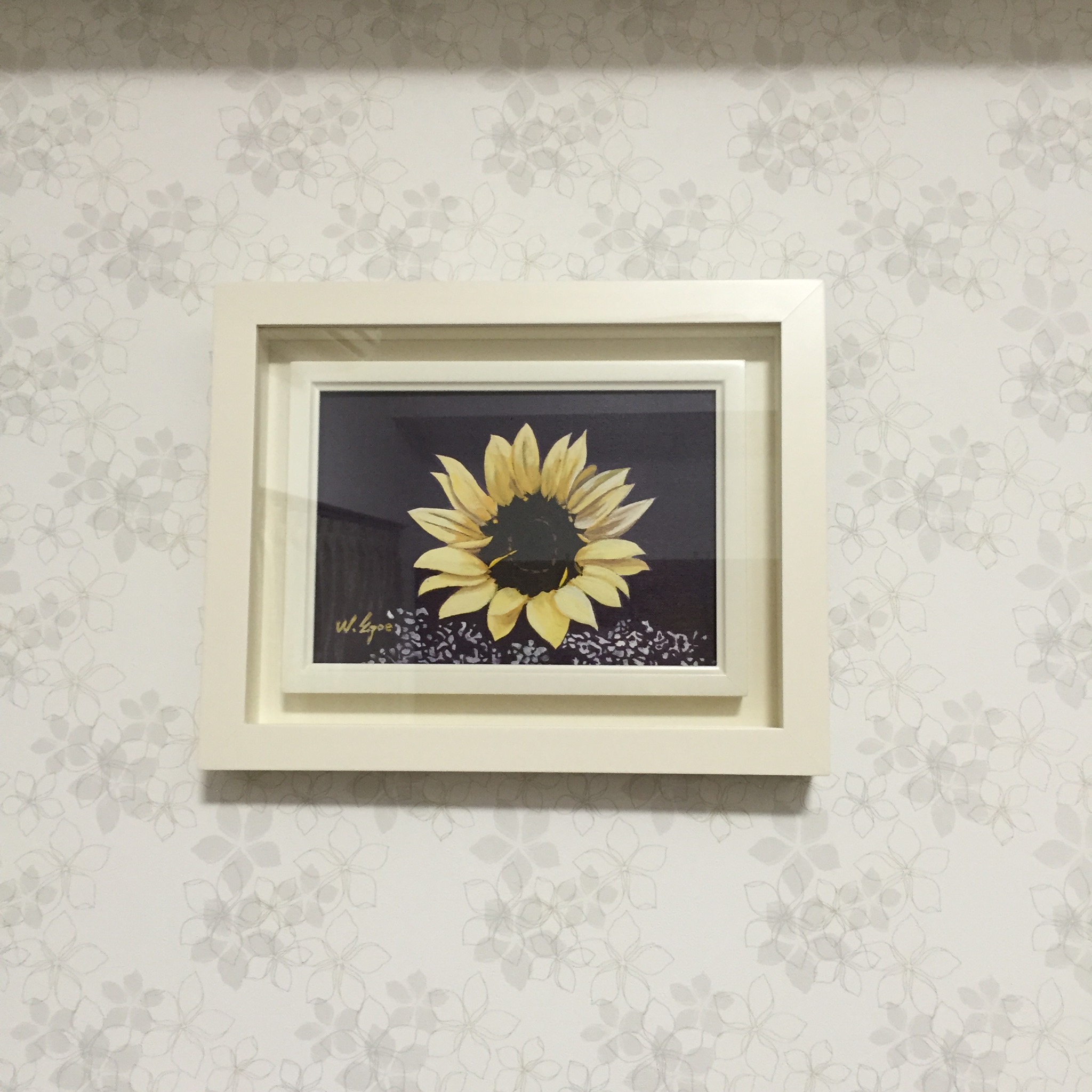 生徒さんから頂いた絵画をピアノを弾いている時に正面になるように飾りました。