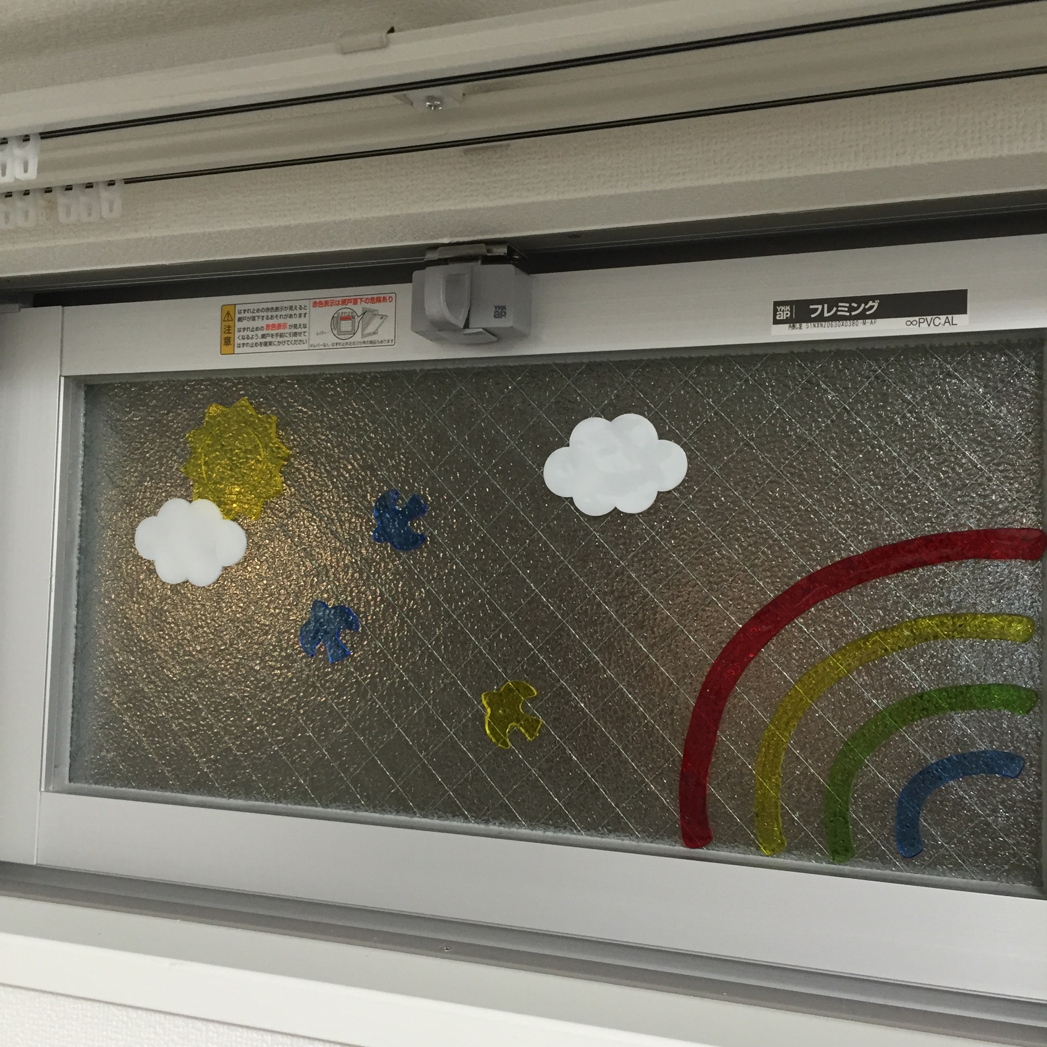 小窓に貼り付けました!虹(笑)頂いたので、ありがたく貼りましたよー!かわいい。