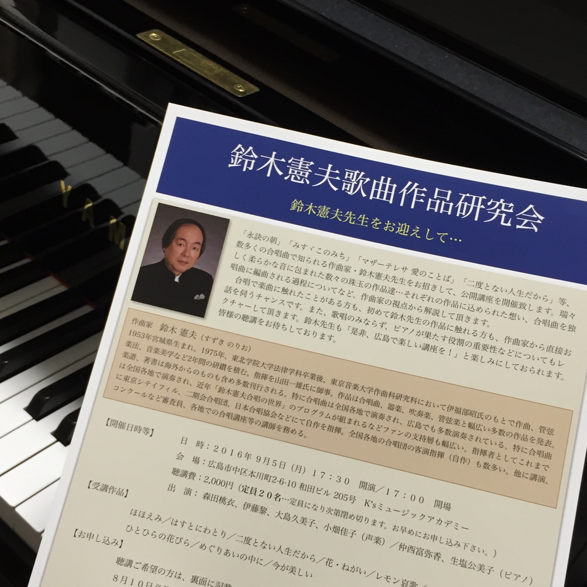 いよいよ、今日になりました。「鈴木憲夫歌曲作品研究会」