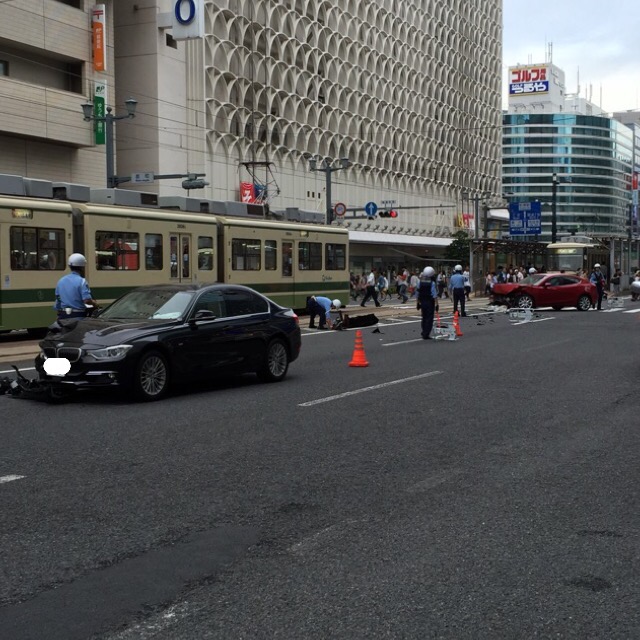 団員の方でした。どーしたんですか?と聞いたら、紙屋町交差点で事故があり、電車が進まないので一旦降りましたとのこと。
