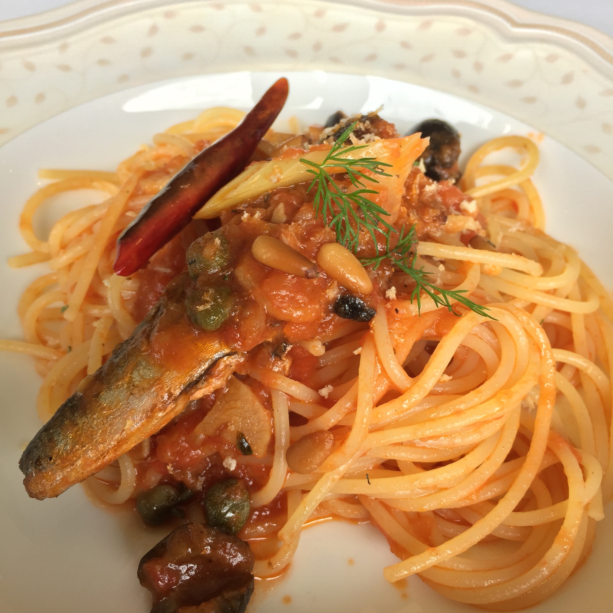 取り分けて頂いたパスタ一つ目は、鰯とトマトソース!