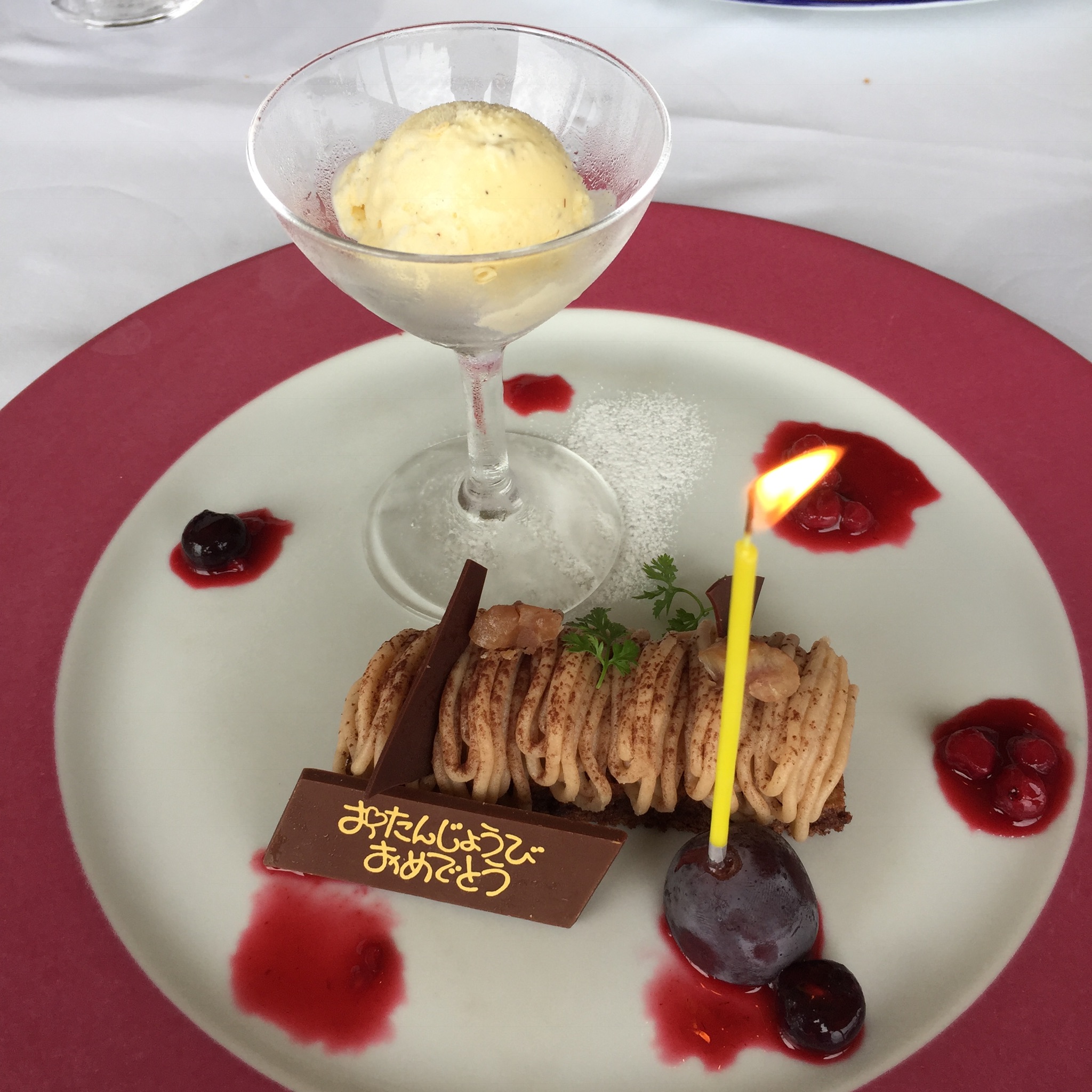 と、デザートプレートが運ばれてきたら、おめでとう仕様でした!