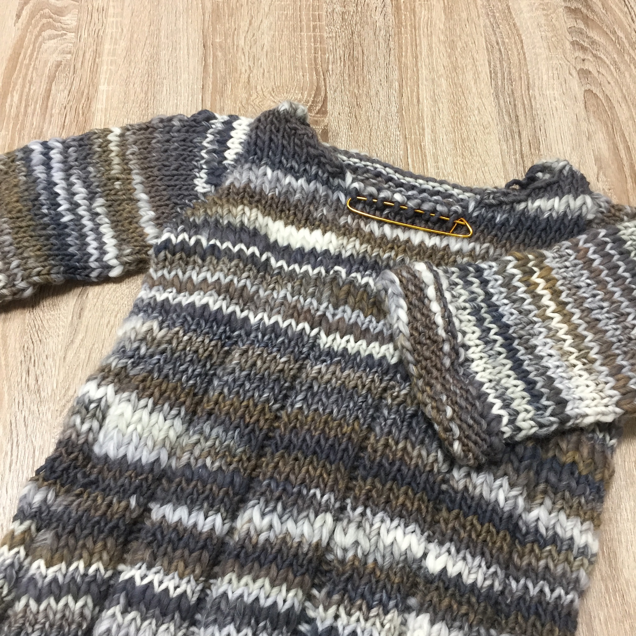 教室で、セーターを広げて写真を撮ってみました。始末していない糸を隠して(笑)