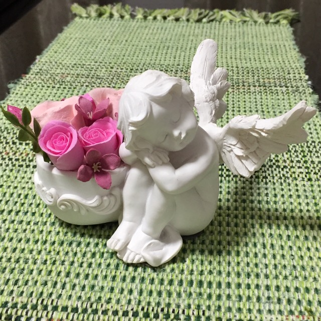 昨日連れて帰った天使はピアノの上に居て貰いました。生徒さん達の幸せを見守って欲しいなぁと思います。