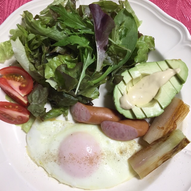 お休みの予定でしたが、金曜日の本番分の合わせが入りました。重たい身体を引きずって、朝食を。アボカドがどうしても食べたくて、マヨネーズ、わさび、お醤油、牛乳を混ぜたソースをかけました。大好きなんです。右下のは「赤ネギ」を焼いたものです。トロトロで美味しいのです。