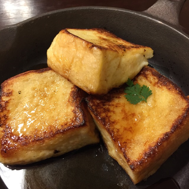 こちらはふんわり。しっかり浸してあるタイプですね。三河屋さんのフレンチトーストです。熱々の鉄板で出てきます♡私はこのシンプルなのが好き。
