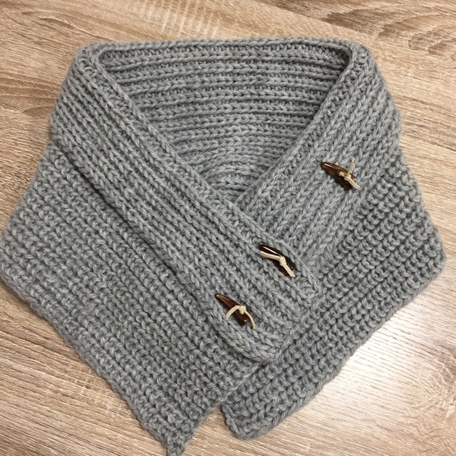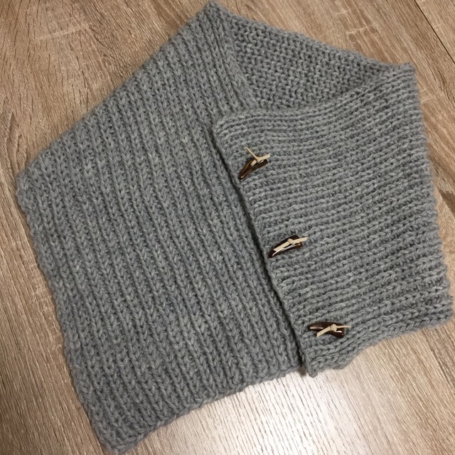 イギリスゴム編みを使ってのスヌード。ようやく完成しました。