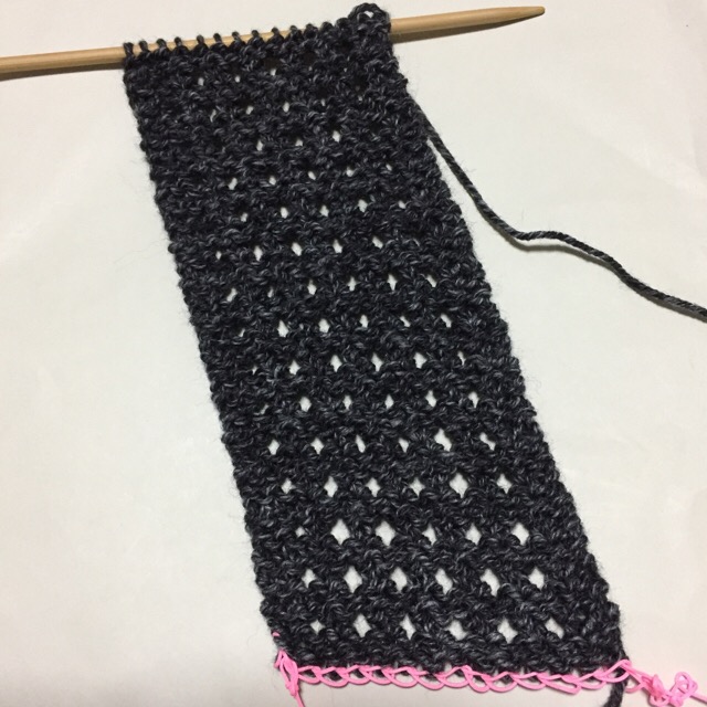 真っ直ぐ編んでいるのに、斜めになっていく、不思議な模様なのです。