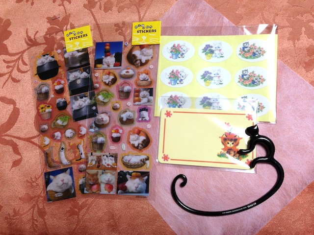 お誕生日のプレゼントは、先日バスルームをリフォームしたので、ということでお風呂グッズ。かわいい雑貨や文具が大好きな私の好みにぴったりな猫グッズも頂きました。