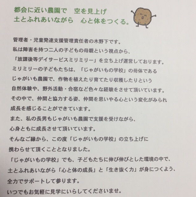 放課後等デイサービス「じゃがいもの学校」始まりました!