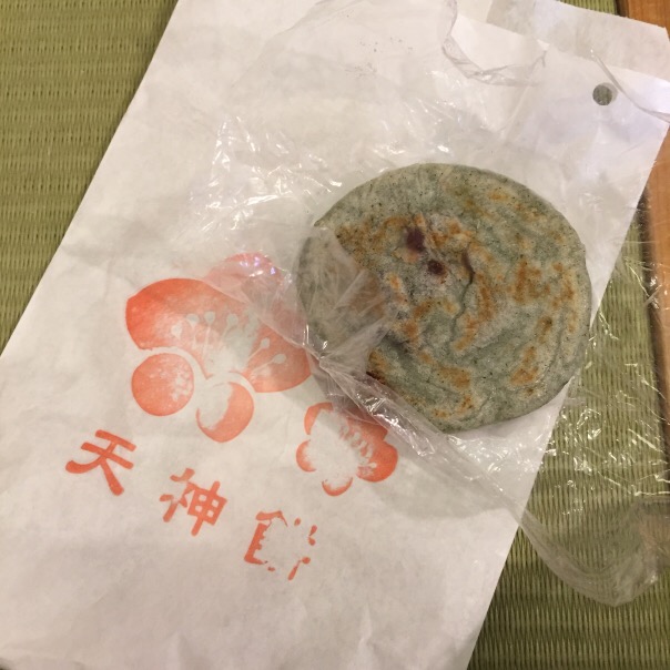 お詣りが済んで、いわゆる梅ヶ枝餅を。焼きたてで、とても美味しかった!寒かった!