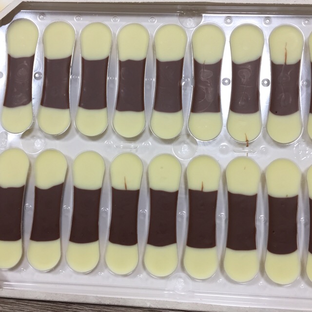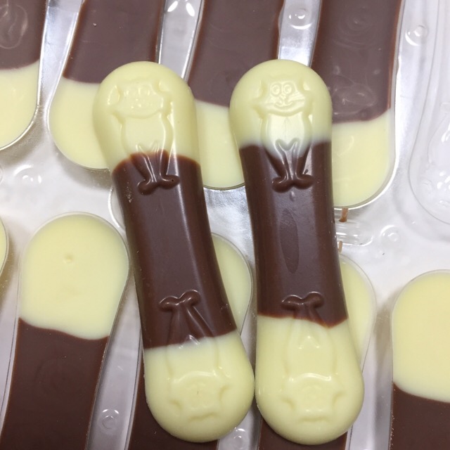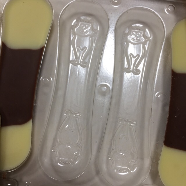 よく見たら、型がそのままパッケージとして使われ、流し込んであるんですね、チョコを。よく考えてあるなーと思って。効率が良くて合理的!