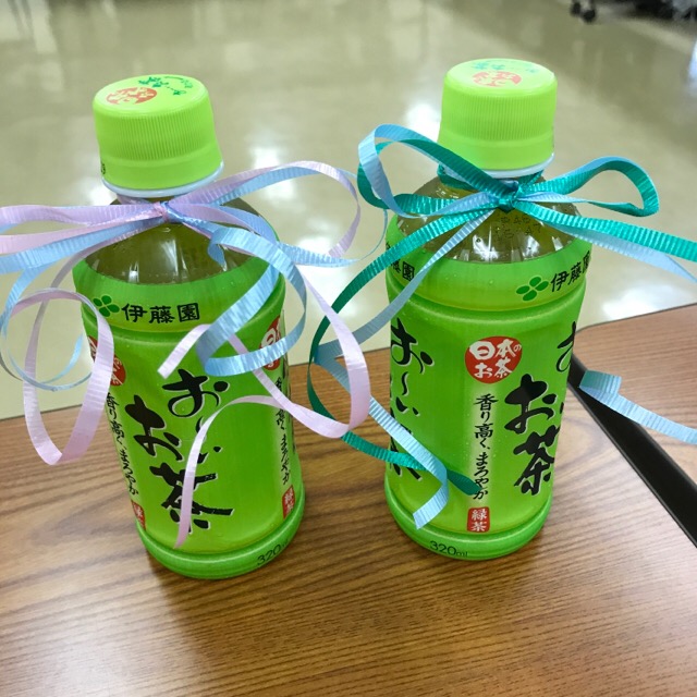 ピアニストの竹中結紀ちゃんが、お菓子を結んでいた紐を再利用していたので、私も真似して(笑)