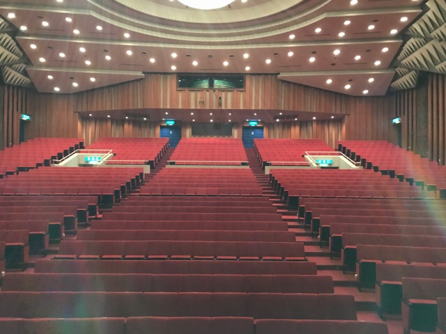 とても大きなホール…圧巻でした。客席からみた舞台のセッティング。