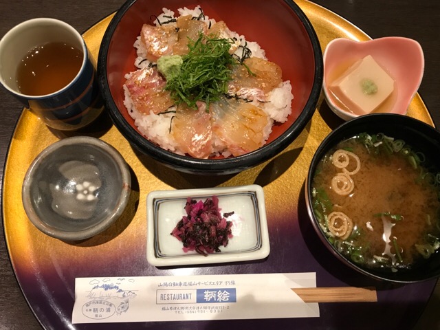 帰りは、福山下りSAで、鯛漬け丼を食べました。