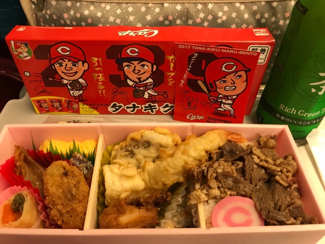 夜7時半の新幹線。森須さんと待ち合わせて、駅弁を食べながら、一路天理へ。