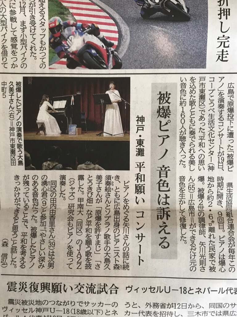 ありがとうございます。被爆ピアノのことを取り上げて頂けることは、とても嬉しいことです。極論を言えば、我々の名前など載らなくてもいいんです。被爆ピアノのことが取り上げられ、多くの方の目に止まり、興味を持って頂けたら、それが一番です。